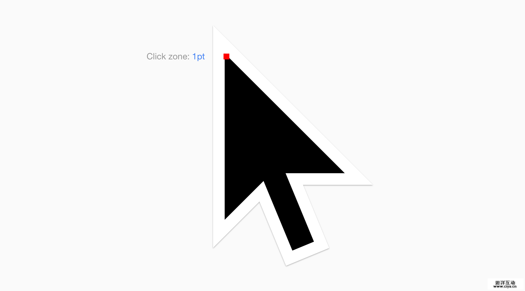 这是个Chrome OS光标的20x版本。 红色区域是能在UI上触发一个事件的实际区域,十分准确。 你知道我的标题。什么是不准确的呢?手指。