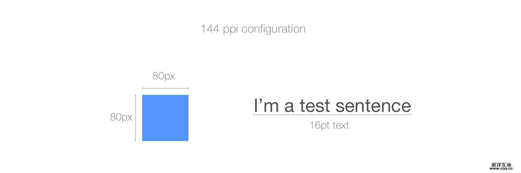 这里有个例子。你可以在允许配置PPI值的软件(比如Photoshop)里面进行试验。我在Photoshop上画了两个80*80px的正方形和16pt的文本,一个配置的PPI值是72,另一个是144。