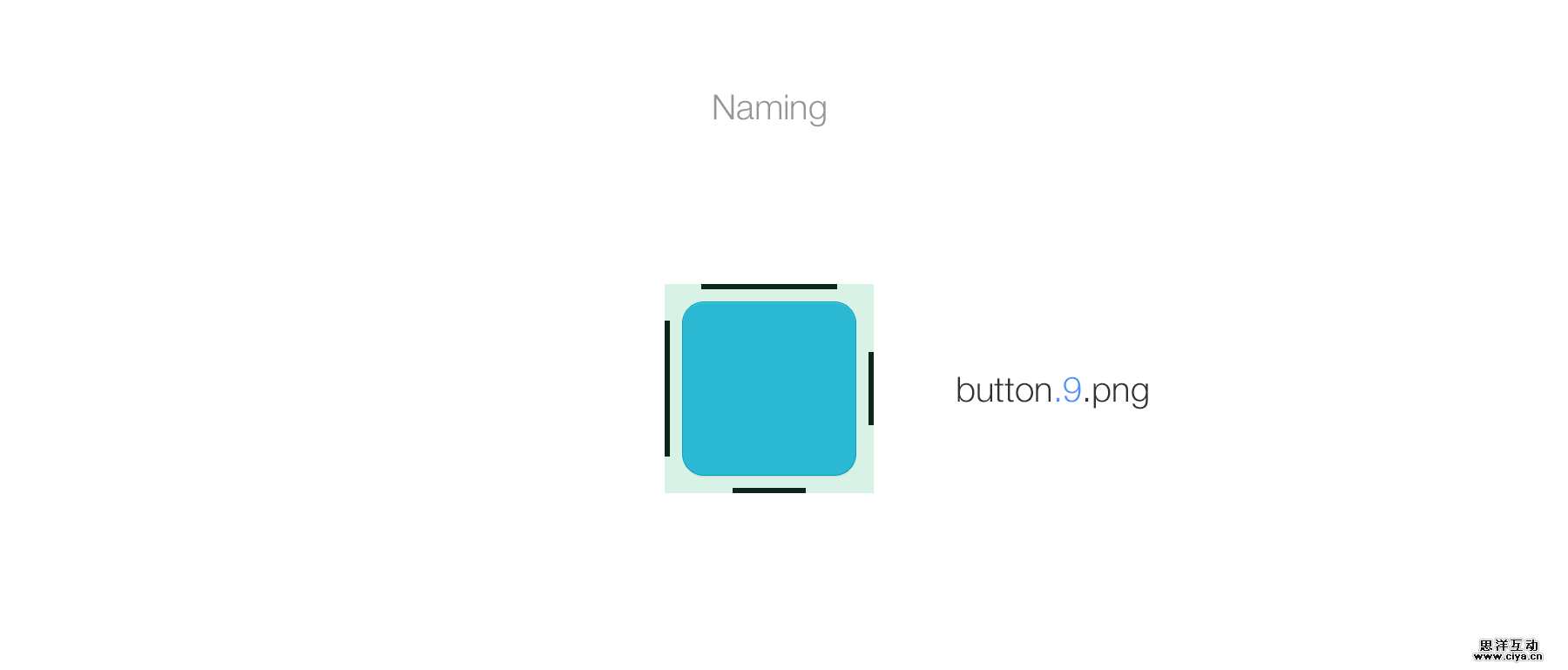 使用九宫格要求在名称后面加上.9,和在iOS资源上添加@2x的方式一样。重命名按钮的例子如下: