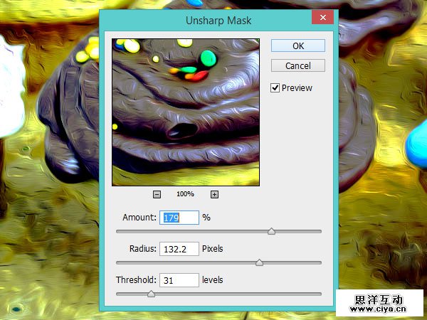 USM锐化:这个滤镜锐化图像边缘,根据用户指定的阈值范围内的像素差异来锐化图像。