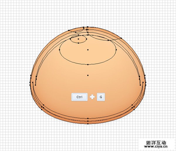 选中你的 “脑袋” ,然后在前面做两个拷贝(Ctrl+C > Ctrl+F > Ctrl+F)。选中顶端的副本,并将其向下移动5px。再选中这步做出的这两个副本,并在路径查找器面板中点击减去顶层按钮。