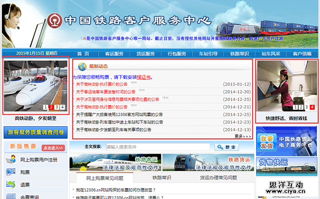 首屏对网站有多重要不用多说,尤其电商网站。但12306作为一个票务订购的网站,首屏部分却展示了一些无关紧要的内容,以幻灯片形式滚动出现的“车站风采”和网站正中位置出现的“最新动态”等都是不必要的板块,这些不重要的内容竟然占了首屏中的85%。而且设计师在左上角和右上角的展示中使用了图片轮换的展示方法,这会让网站在大流量访问时的加载速度更受影响。