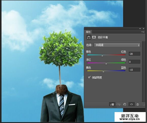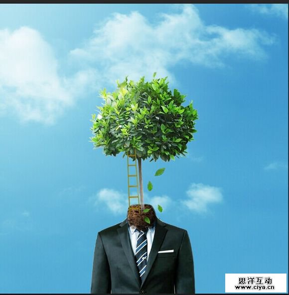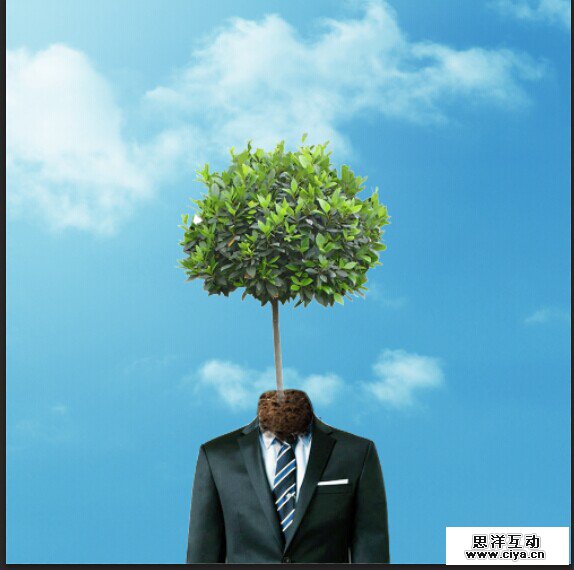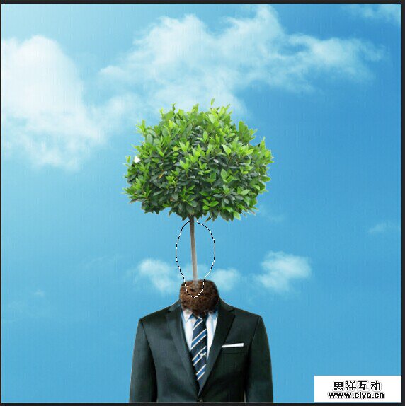 打开树,抠图,移到脖子位置,加蒙版擦拭。