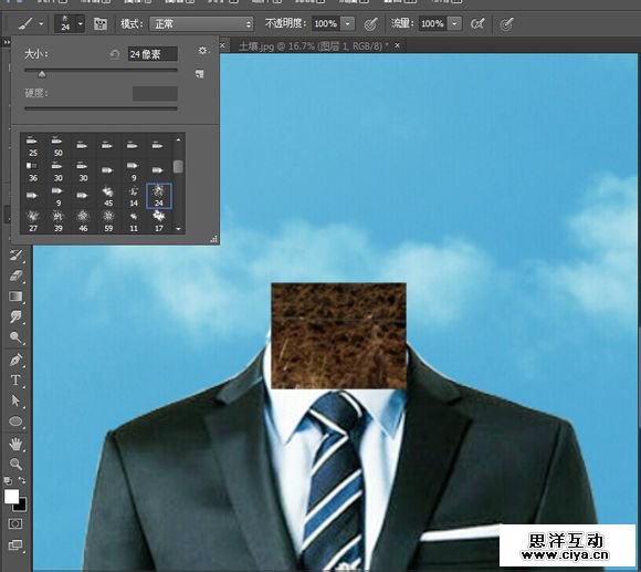 打开土壤图,M选择部分,移到脖子后建蒙版,用24号画笔擦除。