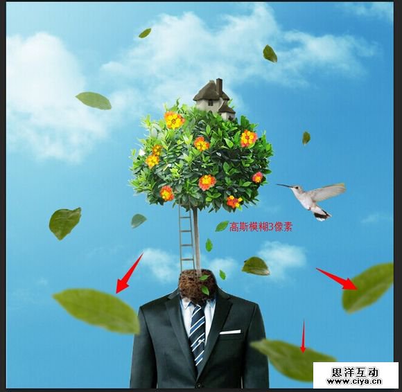 前面比较大的3片树叶,都要通过滤镜-高斯模糊-3像素。