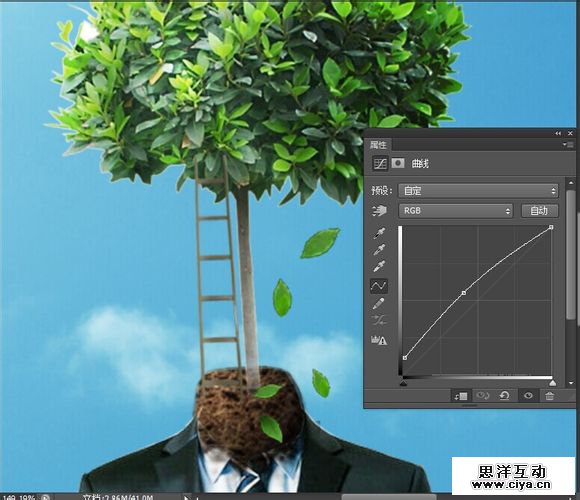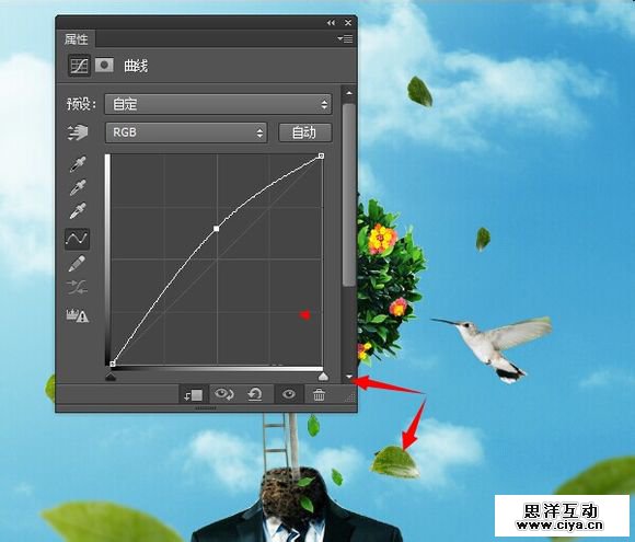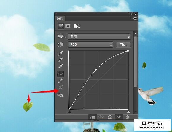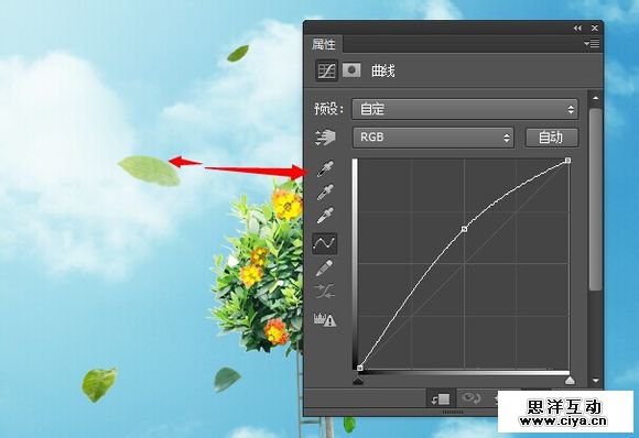 这里新建曲线图层,通过曲线调整树叶的明暗度。