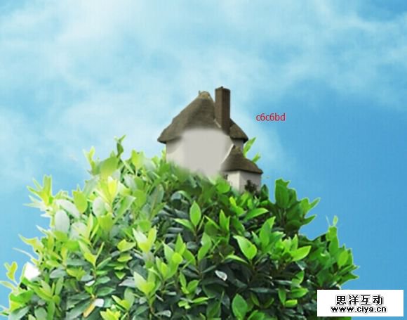 新建图层用c6d6bd在房子正面刷出暗度。图层模式:正片叠底100%