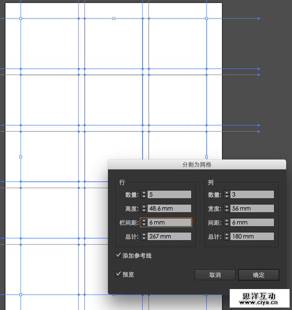 7. 制作单页印刷品或小册子时,使用「分割为网格」工具,可以极快地给页面打上网格: