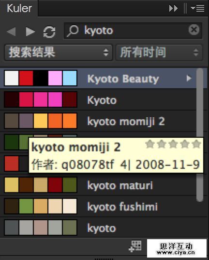 9. 又想起一个,可以在 Kuler 面板里,寻找一些好的配色方案。也可以自己推敲、建立配色方案: