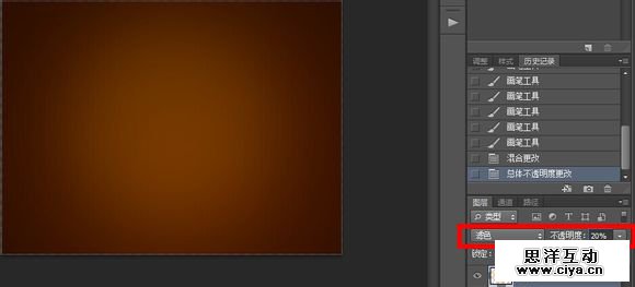新建一个图层,用柔性画笔颜色:fea800,大小:1245在图层中心画一个圆形。图层模式改为滤色,不透明度20%