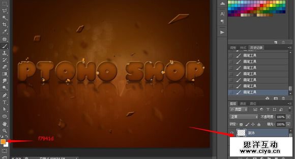 用画笔设置 f7941d颜色画几滴奶油,设置图层样式。