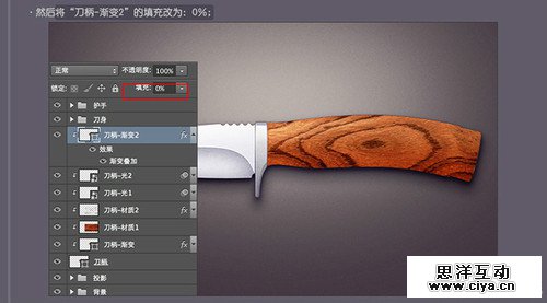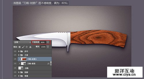 将图层“刀柄-材质1”的不透明度,调为:80%;