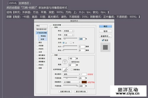 ctrl+d,去掉选区 ;然后给图层“刀柄-材质2”添加斜面与浮雕图层样式