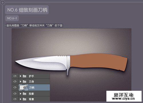 首先将图层“刀柄”移动到文件夹“刀身”的下面