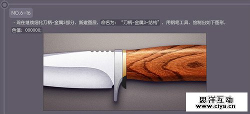 现在继续细化刀柄-金属3部分,新建图层,命名为:“刀柄-金属3-结构”,用钢笔工具,绘制出如下图形,色值:000000;