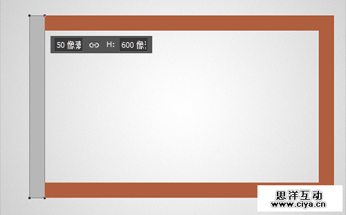 使用矩形工具画一个50*600的矩形,使其与“木框轮廓”的左侧相重合。颜色什么的无所谓,我们不会用到。