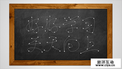 到这里黑板就算完事了,下面,我给黑板添加几个粉笔字。关于粉笔字的做法,网上多如牛毛,我用的方法和网上流传的不尽相同,我用的画笔描边来做的。我觉得既然是粉笔字,那么写出来的字肯定不如字体那样规范,所以我选择使用钢笔,自己画出文字的路径来。