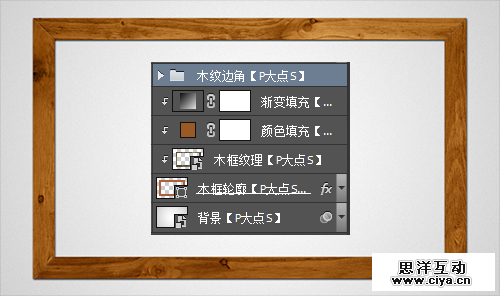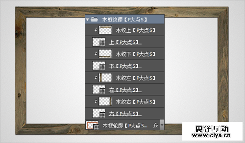同样的操作,为另外三个边添加木纹效果。选择这四个形状和四个木纹图层,CTRL+G,创建图层组并将其命名为“木框纹理”。