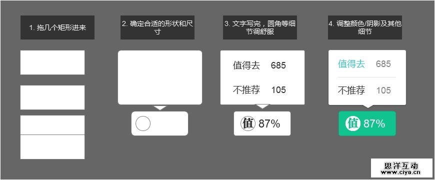 而在Axure中,为了快速、细腻地表达这种效果,我就可以按下面的方法顺手做出来: