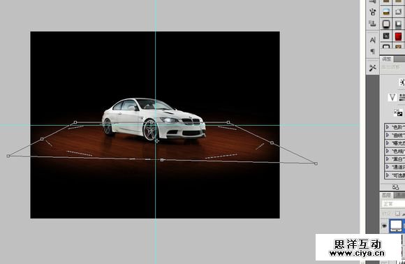 用自由变化工具把地板调整一下视角,以符合汽车图片的视角透视。