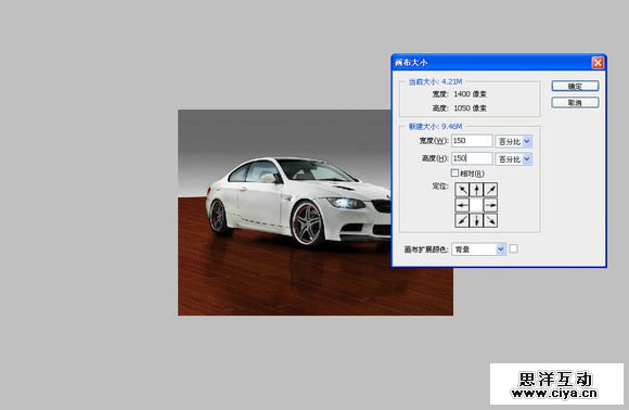 为了制作方便,我把画布放大了一些,这里参数是150-150,单位百分比。