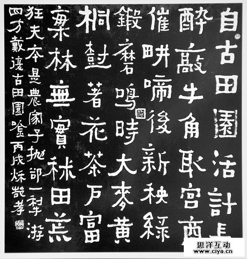 万物皆因变化富有美感,书法的章法能很好的诠释这个问题,大小、粗细、轻重、湿燥的对比之美让简单的文字变得富有魅力。