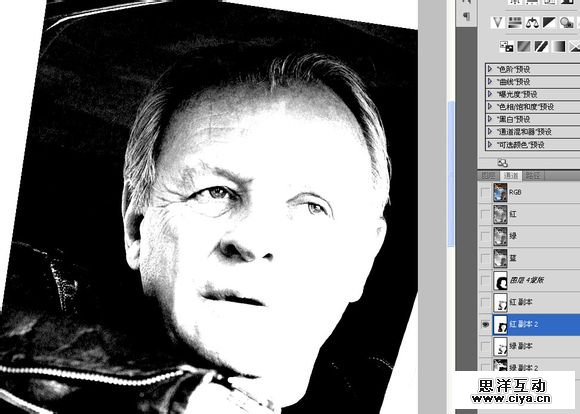 按住shift点击蒙版缩略图隐藏蒙版,单独显示安东尼霍普金斯,在通道中复制红色通道,用色阶先把头顶的头发调出来。感觉这个三个通道都差不多,没有对比特别明显的通道。