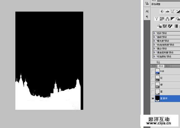 单独显示红场,在通道里复制蓝色通道,用色阶和画笔处理一下,大多数同学对用通道抠图这门手艺已经是得心应手了,不用多说。