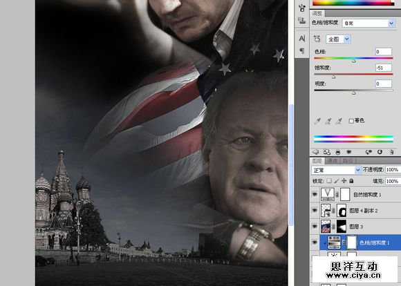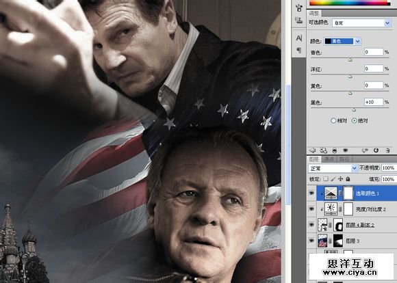我继续使用一个“可选颜色”让霍普金斯的肤色接近尼姆连森。