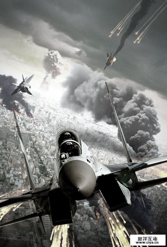复制到“空战”,调整一下位置和大小。还有透明度和色相饱和度,话说这个悲催的飞行员即使施放了那么多的干扰弹,最后还是被击落。