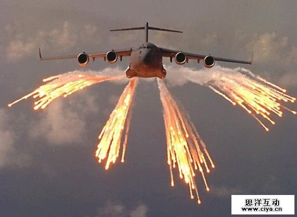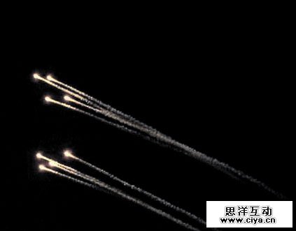 似乎还得增加一些东西,我准备在这架即将坠毁的F15旁边也添加一些干扰弹,这个也是在百度找到的图片。