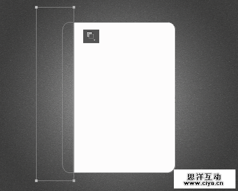 按住ALT,画一个矩形,将矩形移至圆角矩形的左边,得到我们要的笔记本的面板轮廓。ALT这里是快捷键,减去模式,当然你也可以先画好再减去,然后合并形状组件。