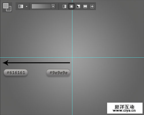 新建文档,这里我用的是1000*800像素。设置前景色为#9e9e9e,背景色为#616161,拉一个从中心向四周的径向渐变。