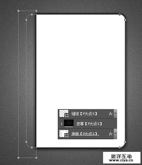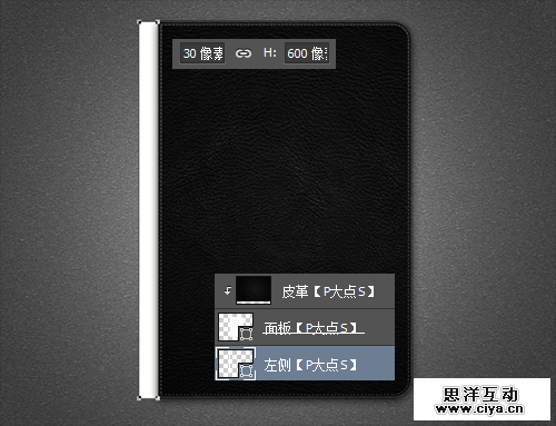 使用矩形工具,在皮质面板下层画一个30*600像素的矩形,摆放在皮质面板的左边。