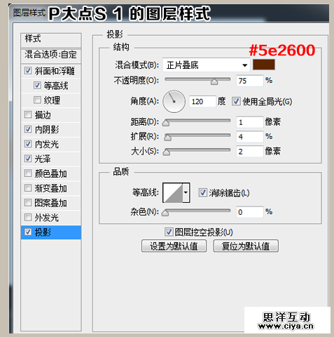 下面,我们设置“P大点S 2”的图层样式。