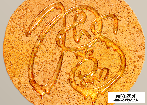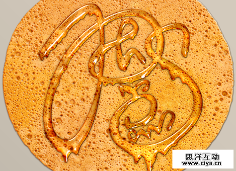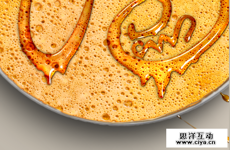 既然是蜂蜜滴,那不可能不会往下滴,所以,我们使用圆形的画笔在文字上进行添加处理,营造蜂蜜往下滴的状态,同时也可以使用液化滤镜对文字进行微处理。