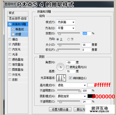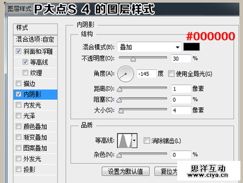 下面我们设置“P大点S 4”的图层样式。