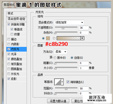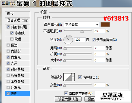 下面,我们设置“蜜滴1”的图层样式。