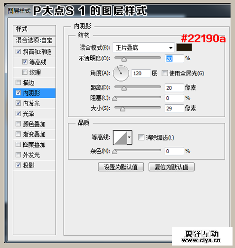 下面我们设置“P大点S 1”图层的图层样式。
