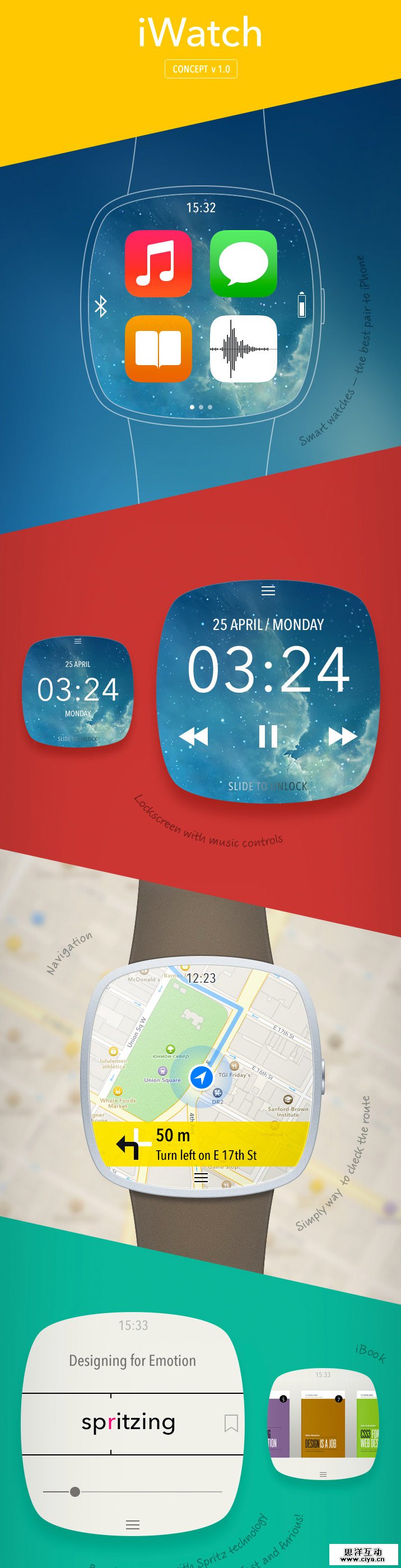 尽管这次的案例中有许多是Apple Watch发售之前的概念设计,但是在UI上还是颇有亮点,足以催化创意,值得借鉴~