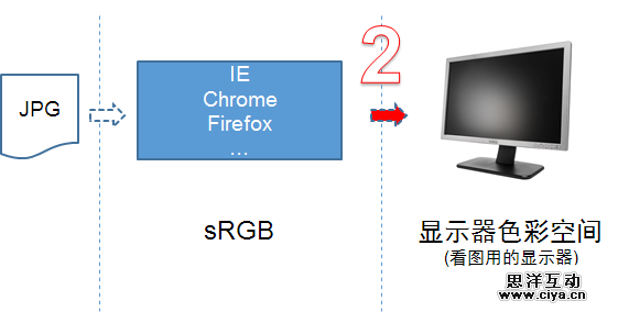 让我们来复习一下这张图,理论上浏览器应该把图片从sRGB转换为显示器色彩空间(U2413)来显示。但IE偏不这样,它直接把未经转换图像数据直接丢给显示器了,这就相当于一个中国人看一部印度字幕的美国电影,就是这么滑稽。背后原因不得而知,以下纯属个人猜想:
