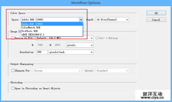 本文提到RAW的时候直接套用了Adobe RGB色彩空间确实欠妥,因为色彩空间是在Adobe Camera Raw(ACR)插件在解析RAW文件的时候套用上去的。我们不仅可以查看,还可以改变ACR的工作方式。