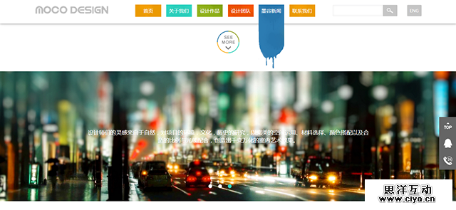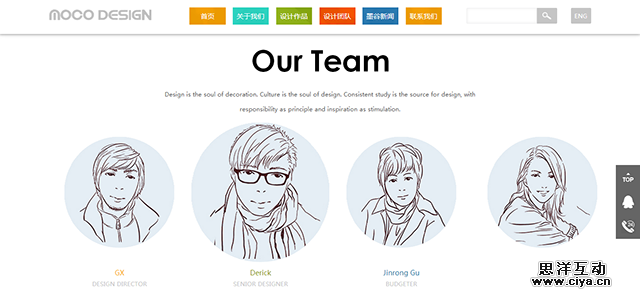 在用户操作之后发生一些适当的交互效果,这是最能让用户感受到自身存在感的方法之一,正如@AnyForWeb_UED 为MOCO Design设计的网站。鼠标悬停在导航位置时出现油漆状的效果,不仅在美观度上加分不少,也让用户及时获得了他们所希望的简单反馈。团队介绍页面摒弃了常规的设计模式,使用了手绘风格的表现形式,也在鼠标悬停时产生了图片放大效果。