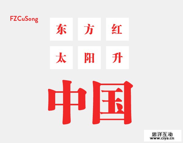 注意方正粗宋这个字体中,保持了经典宋体的竖粗壮、横细平的特点,该字体由方正字库创造: