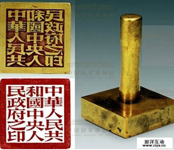 1954年用于签署宪法的中华人民共和国国玺上的宋体: