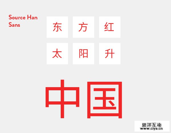 思源黑体是Adobe与Google合作,在2014年推出的可爱的新版黑体。你可以发现它与SumHei在端点处理上的不同: