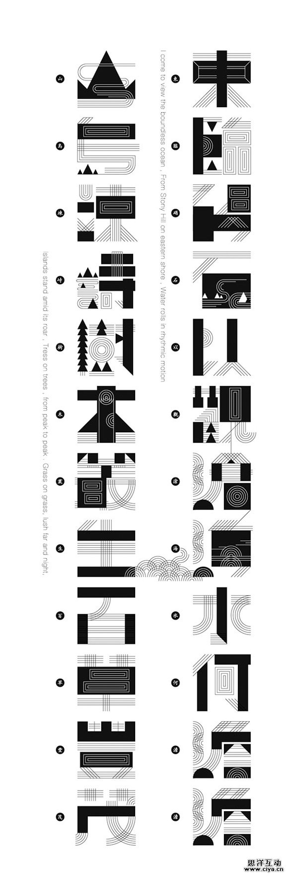 下面的诗词视觉化作品出自北京印刷人Liam Lee之手。