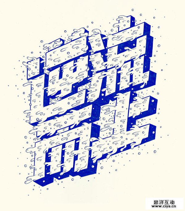 这幅出色的作品由上海的More Tong创作。这幅画包含两个被拆开的汉字——非常,也即广告公司Anomaly的汉字。他将“非”拆分为两半,分别置于“常”的左右。