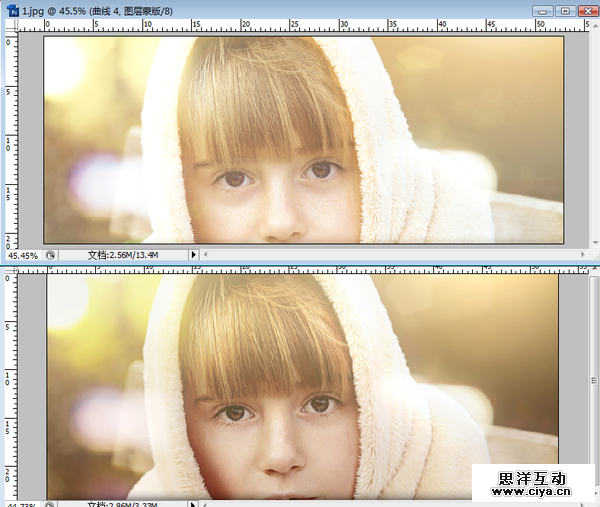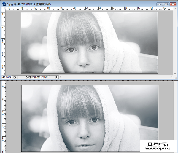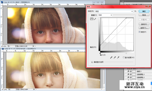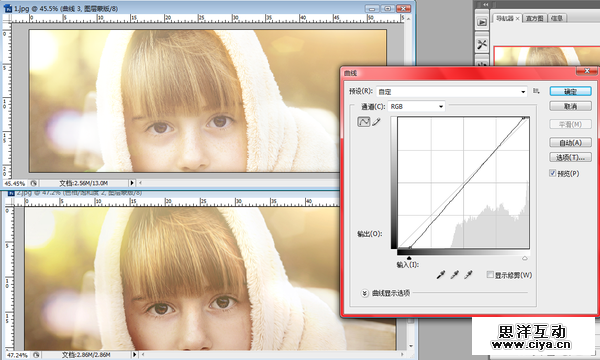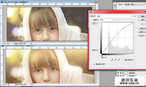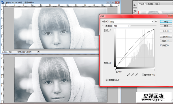 改变明度又保留(甚至加强)对比度我习惯用曲线工具。对比度并没有特别明显的增强,所以S型调整不适用。做了以下操作。(上面的一张是当前调整下的预览图,下面一张是图2,会一直放在这个位置进行对比)