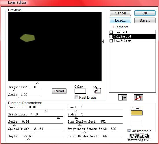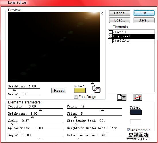 观察一下有什么区别?是不是感觉图2蒙了一层夕阳?而且仔细看,姑娘的右上方还有一个五边形的光晕。这说明我的猜想没错,作者用了光晕插件。我常用的一款叫做“Knoll Light Factory”。因为刚刚一直用的图层调整,本质上这些图层都是透明的,所以要先Ctrl+Alt+Shift+E盖个印再从滤镜中找到这个插件来添加光晕才可以看到预览哦~光晕的大小位置发光量等等参数都可以自定义,界面大概是下面这样吧: